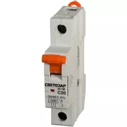 Выключатель автоматический СВЕТОЗАР 1-полюсный, 20 A, "C", откл. сп. 10 кА, 230 / 400 В SV-49071-20-C
