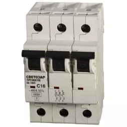 Выключатель автоматический СВЕТОЗАР "ПРЕМИУМ" 3-полюсный, 6 A, "C", откл. сп. 10 кА, 400 В SV-49033-06-C