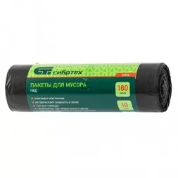 Пакеты для мусора 180 л x 10 шт пвд короткий ролик тип дна Звезда Сибртех 92746