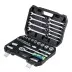 Набор инструментов Сибртех 13393, поставляющийся в пластиковом кейсе, состоит из 32 предметов с присоединительным размером 1/2", предназначенных для закручивания и откручивания резьбового крепежа. В комплект поставки входят 2 удлинителя и кардан, облегчающие работу в труднодоступных местах. Набор будет полезен для ремонта автомобиля в гараже, пригодится также и в быту.