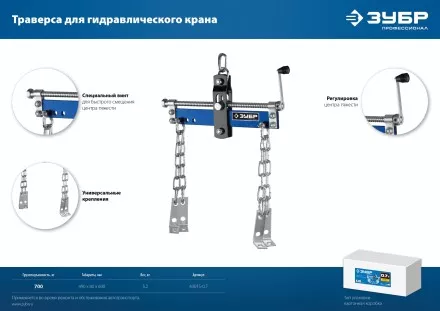 ЗУБР 0.7 т, траверса для гидравлического крана, Профессионал (43015-0.7) купить в Магнитогорске