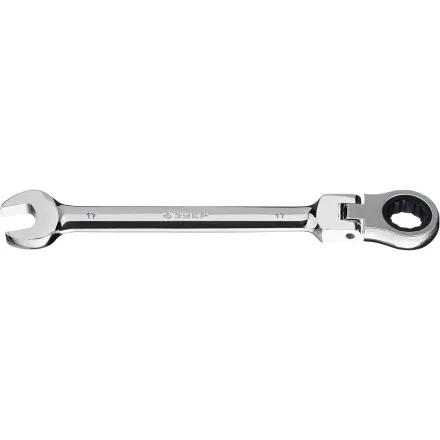 ЗУБР 17 мм, шарнирный трещоточный гаечный ключ, Профессионал (27101-17)